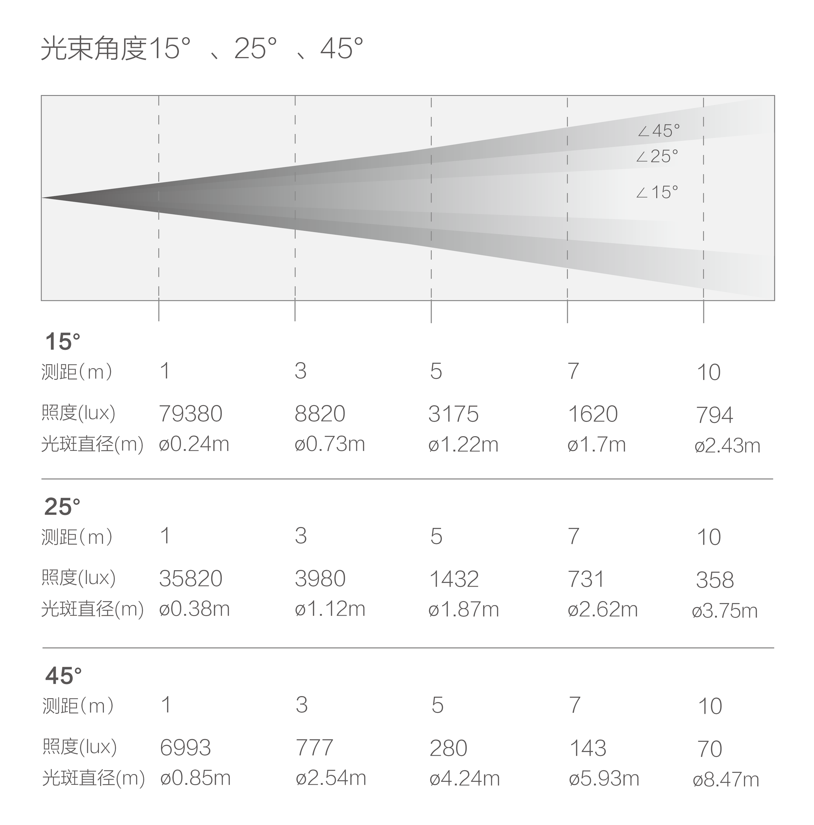 | ·光束角度 | 8°、15°、25°、45° |